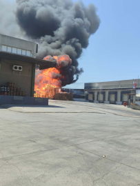 Kadir ÖZEN/İZMİR, (DHA)- İZMİR'in Bornova ilçesinde, palet fabrikasının bahçesinde yangın çıktı. Tutuşan paletler nedeniyle büyüyen alevler bitişikteki 2 soğuk hava deposu ile 4 otomobil ve 1 minibüse de sıçradı. Araçlar demir yığınına dönerken, iş yerlerinde zarar oluştu. Işıkkent Mahallesi 6106/36 Sokak'taki bir palet fabrikasının bahçesinde saat 13.30 sıralarında, belirlenemeyen bir nedenle yangın çıktı. Bahçede tutuşan ahşap paletler nedeniyle alevler kısa sürede büyüdü. Alevler, fabrikanın bitişiğindeki 2 ayrı soğuk hava deposu olarak kullanılan iş yerinin dış cephesine sıçradı. İş yerlerinin zarar gördüğü yangında, alevlerin ulaştığı 1 minibüs ile 4 otomobil ise kullanılamaz duruma geldi. İtfaiye ekipleri, yangını 1 saat içinde söndürdü. Yangının çıkış nedeni araştırılırken, polis olayla ilgili soruşturma başlattı. (DHA)