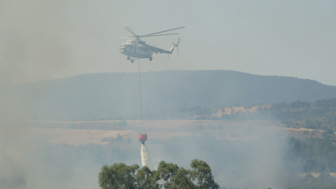 Sazlıkta çıkan yangın, helikopterli müdahaleyle kontrol altına alındı