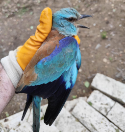 Ramazan ÇETİN/DENİZLİ, (DHA)- DENİZLİ'nin Çal ilçesinde gökkuzgun kanadından yaralı bulundu. Sırbistan'da bilimsel amaçlı halkalandığı belirlenen kuş, tedaviye alındı.Olay, dün Çal ilçesi kırsal Denizler Mahallesi'nde meydana geldi. Tarlasında çalışırken yerde hareketsiz yatan renkli kuşu fark eden çiftçi Eşref Eşbah, durumu Çal Belediyesi ekiplerine bildirdi. Bölgeye gelen zabıta ve belediye veterinerinin ilk incelemesinde kuşun, koruma altındaki türlerden olan gökkuzgun (Coracias garrulus) olduğu belirlendi. Kanadından yaralı olduğu tespit edilen kuş, tedavi altına alındı. Veterinerin incelemesinde, kuşun ayağında 'Museum Belgrade 3X16338' ibareli metal halka bulundu. Kuşun, Sırbistan'ın başkenti Belgrad'da bilimsel amaçla halkalandığı, ardından Avrupa'dan Afrika'ya uzanan göç rotası üzerinde Denizli'ye kadar uçarak burada yaralandığı değerlendirildi.'DOĞAL YAŞAM ALANINA GÜVENLE BIRAKACAĞIZ'Çal Belediye Başkanı Ahmet Hakan, kuşun koruma altına alındığını belirterek, "Denizler Mahallesi'nde, duyarlı bir vatandaşımızın ihbarı sayesinde çok özel ve nadir bir kuş türü olan 'Gökkuzgun' ile karşılaştık. Bu kuş, küresel ölçekte nesli tükenme tehlikesiyle karşı karşıya olan bir tür ve yapılan incelemelerde Sırbistan'ın Belgrad kentinde halkalanmış, yani kayıt altına alınmış bir birey olduğu tespit edildi. Veterinerimiz Ediz Bey, olaya hızlıca müdahale etti. Bu kıymetli canlıyı sağlığına kavuşturduktan sonra, doğal yaşam alanına güvenle geri bırakacağız" dedi.'BİLİMSEL OLARAK İZLENEBİLİYOR'Veteriner hekim Ediz Zeybek ise kuşun ayağından ne zaman, nerede halkalandığını ve izlediği rotayı bilim insanlarına bildirdiğini dile getirerek, "Bu halkalama sistemi sayesinde kuşların göç yolları, popülasyon değişimleri ve iklim değişikliğine tepkileri bilimsel olarak izlenebiliyor. Kuş, ilk tedavisinin ardından Doğa ve Milli Parklar Denizli Şube Müdürlüğü'ne teslim edildi. Buradan da doğal yaşam alanına geri salınacak" diye konuştu. (DHA)