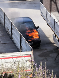 Basri Tuncay ERTAN/ERDEK (Balıkesir), (DHA)- BALIKESİR’in Erdek ilçesinde, TIR garajında park hainde olan otomobil motor kısmından alev alarak yandı. Yangın saat 17.00 sıralarında çıktı. TIR garajında park halinde bulunan Recep A.’ya ait 26 NF 496 plakalı otomobilin motor bölümünden alevlerin yükseldiğini görenler, 112 Acil Çağrı Merkezine haber verdi. İhbar üzerine olay yerine itfaiye ve polis ekipleri sevk edildi. Polis ekipleri çevrede güvenlik önlemi alırken, kısa süreli paniğe neden olan yangın, itfaiye ekiplerinin müdahalesiyle yarım saatte söndürüldü. Araç kullanılamaz hale gelirken, yangının çıkış nedeniyle ilgili inceleme başlatıldı. (DHA)