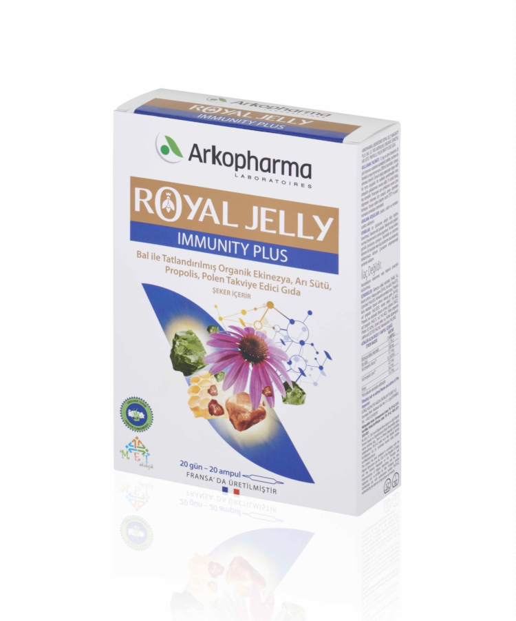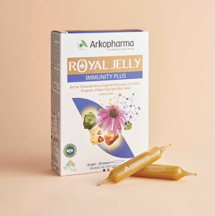 Dünyanı fitoterapi devlerinden biri olan Fransız Arkopharma’nın bağışıklık sistemini güçlendirmek için arı sütü, propolis ve ekinezya ve polen içeren Royal Jelly Immunity Plus’ı kış aylarına karşı dirençli kalmayı sağlayan desteklerin başında geliyor.