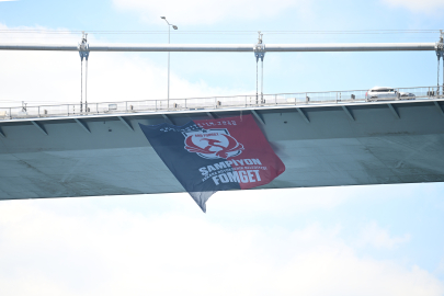 ANKARA, (DHA)- KADIN Futbol Süper Ligi’ni şampiyon olarak tamamlayan Başkent temsilcisi ABB FOMGET’in şampiyonluk bayrağı, İstanbul Boğazı’nda Fatih Sultan Mehmet ve Yavuz Sultan Selim köprülerine asıldı.12x18 metre ebatlarındaki iki dev bayrak, ABB FOMGET’in elde ettiği şampiyonluğu simgeleyerek Boğaz’ın iki yakasını birleştiren iki köprüde yerini aldı.Bayrakların, her iki köprüde de 3 gün boyunca asılı kalacağı belirtildi.