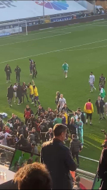 Olgucan KALKAN / İSTANBUL,(DHA)- SÜPER Lig’in 27’nci haftasında Eyüpspor sahasında Konyaspor’u 2-1 mağlup ederken, karşılaşmanın bitiş düdüğünün ardından hem sahada hem de protokol tribününde kavga çıktı.Sahada Kramer ile Robin Yalçın arasında başlayan tartışmalar bir anda büyüdü ve iki takım oyuncuları arasında arbede yaşandı. Pozisyonun ardından Robin Yalçın ikinci sarı kartın ardından kırmızı kart gördü. Konyaspor’da da Kramer ve Umut Nayir sarı kart gördü.PROTOKOL TRİBÜNÜ DE KARIŞTISahada yaşanan olayların ardından Konyasporlu yöneticiler ile Eyüpsporlu taraftarlar arasında da kavga çıktı. Bitiş düdüğünün ardından protokol tribününde yer alan Konyasporlu yöneticiler ile Eyüpsporlu taraftarlar arasında çıkan arbedeyi polis güçleri zorlukla ayırdı. Kavga uzun süre devam ederken, taraftarları sakinleştirmekte zorlanıldı.